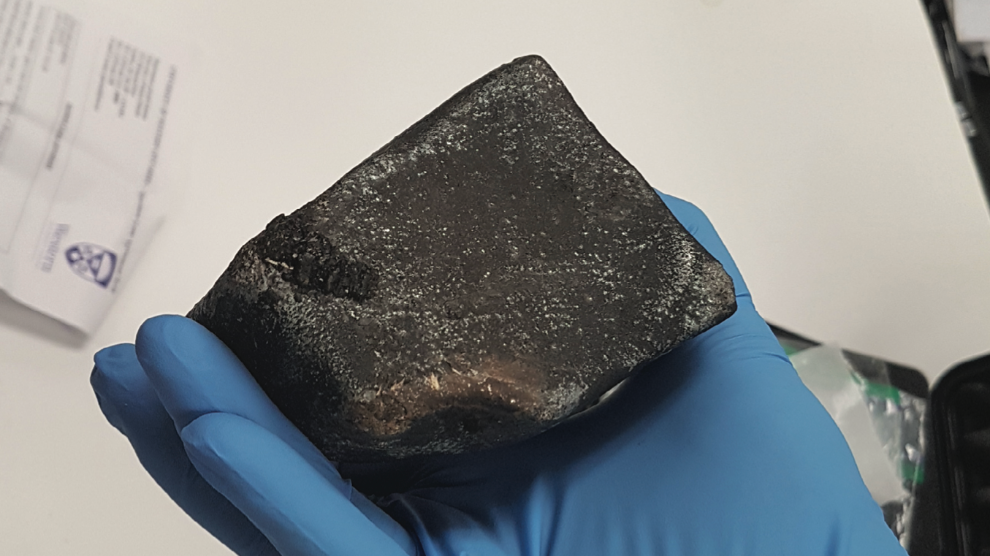 1.3 kilograms by weight, it was the size of a softball, but shaped more like a brick, with a dark surface that looks like crinkly charcoal. Darker than what you would find just about anywhere in those Rocky Mountains. The surface is actually just a thin fusion crust, crisped by the heat of friction with the upper atmosphere as this chip of the cosmos slowed down from its entry speed of 18 kilometres per second. Most meteors come zooming in even faster than that, actually. It does take a lot of heat to fry that thin wrapper of rock, but remember the chunk came from outer space, where it was a couple hundred degrees below zero for a very long time indeed, and it only spent a few seconds braking in the atmosphere. Its insides didn’t have time to feel the heat. Almost never is a meteorite burning hot when it kerplops on the ground.